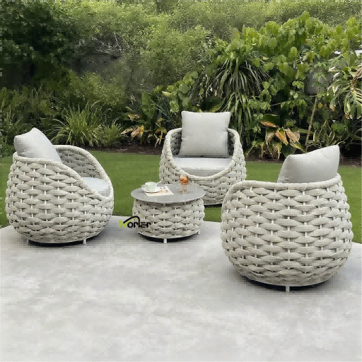 4. Kötél kültéri kanapé: A kézzel fonott kötél kialakítás vizuálisan könnyű és lélegző, az alumínium keret pedig modern megjelenést kölcsönöz. A kényelmet és a művészetet ötvözi, így népszerű választás egy kifinomult erkély kialakításához.