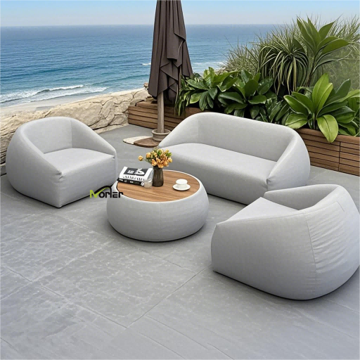 3. Kárpitozott kültéri kanapé: A lusta ember kényelmét nyújtja, puha, vastag párnákkal és gyorsan száradó anyagokkal, amelyek kényelmessé teszik a fekvést vagy az ülést.